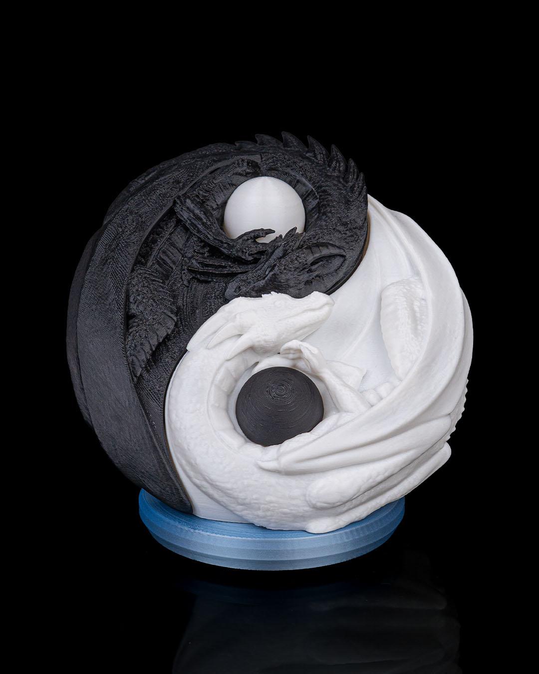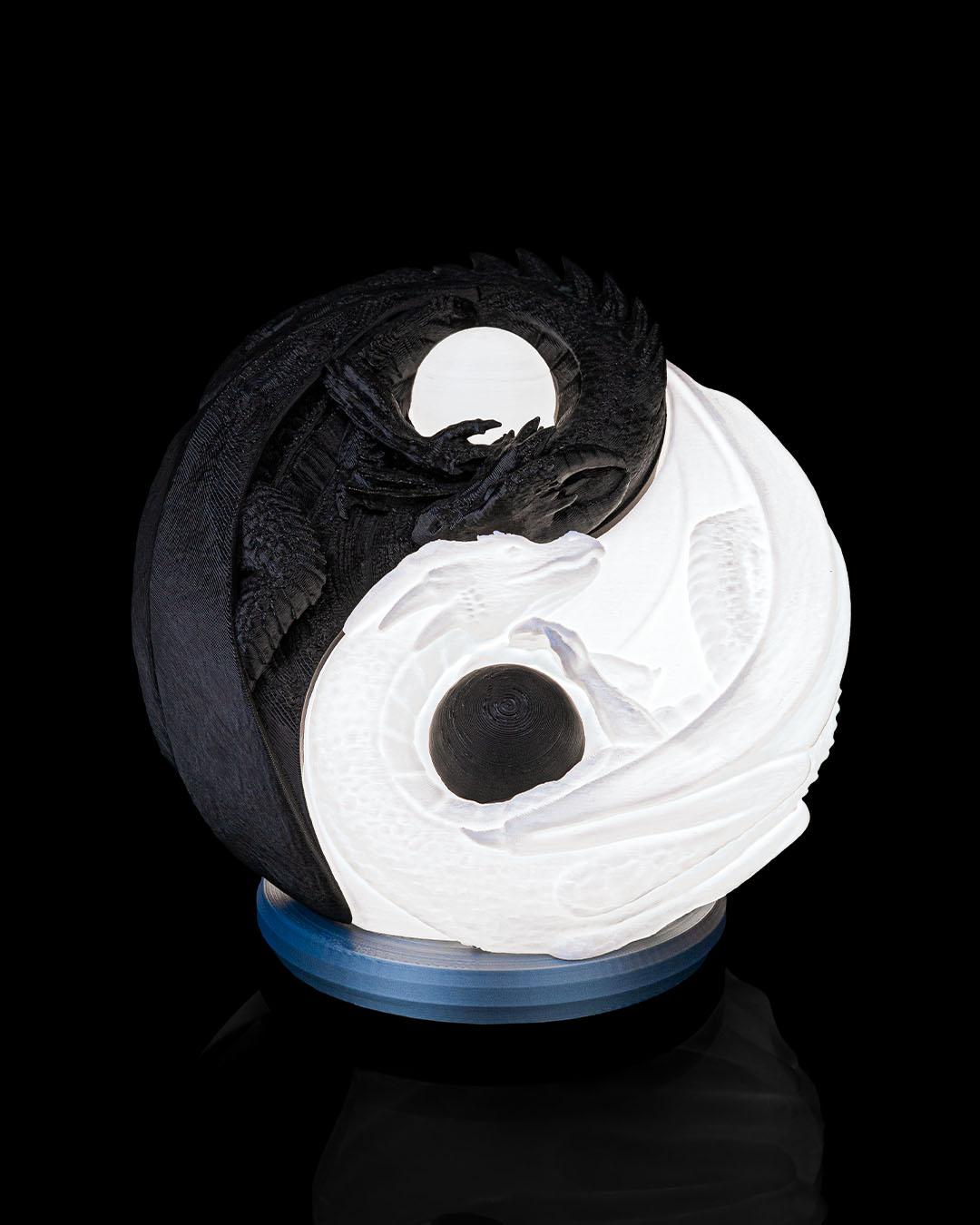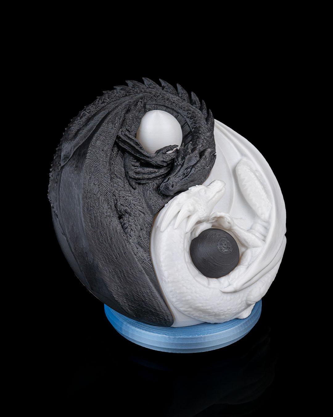 Twin dragons intertwined in perfect symmetry, glowing with balance and grace.