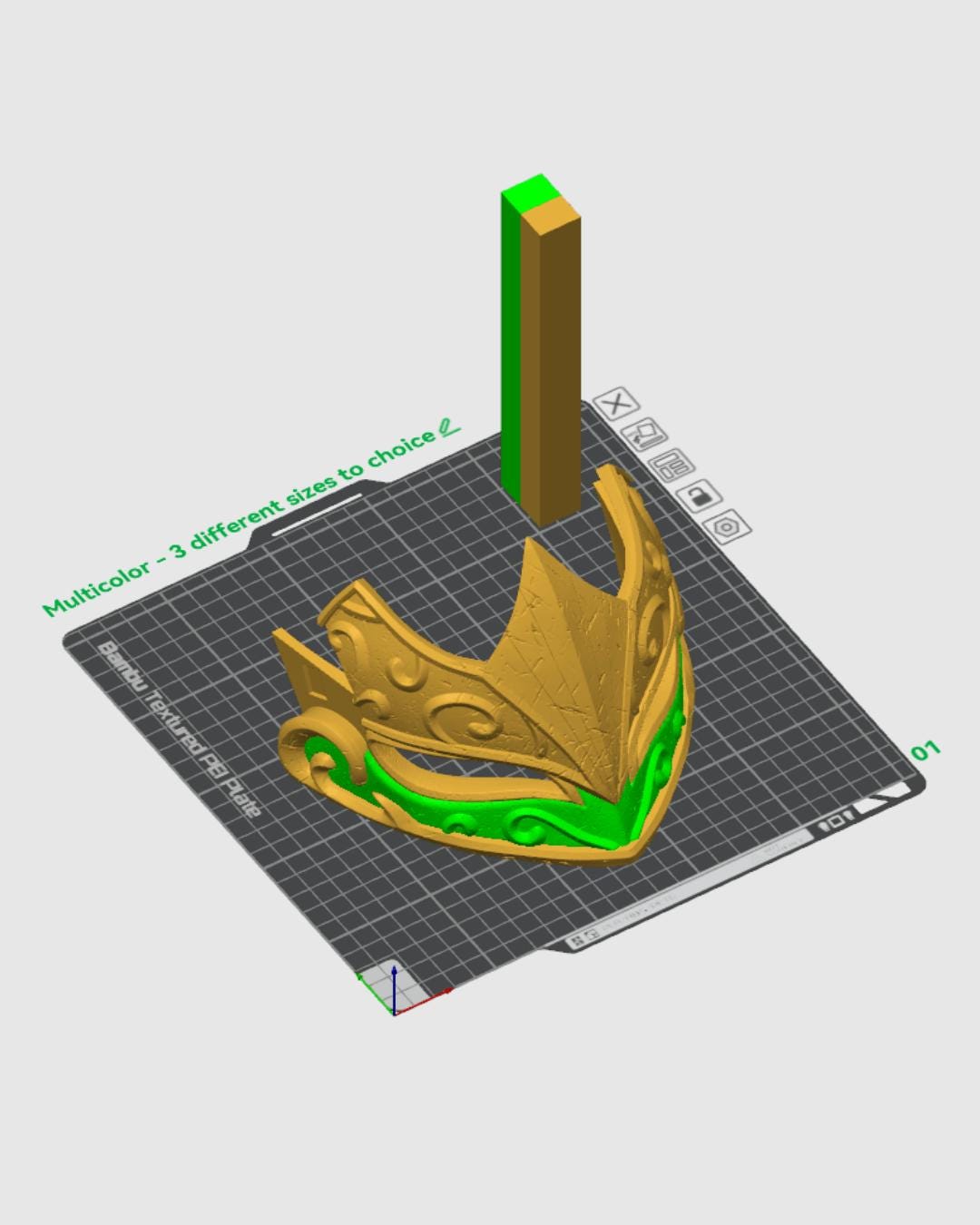 Assembly required, order in multicolor or single color ready for paint! The pictured helmet was printed with Silk Green and Silk Copper. If you want something similar, you can use the Custom Request option. We do offer some standard color options. The primary color will be as ordered, the secondary colors available are silk silver, silk gold, or silk copper.