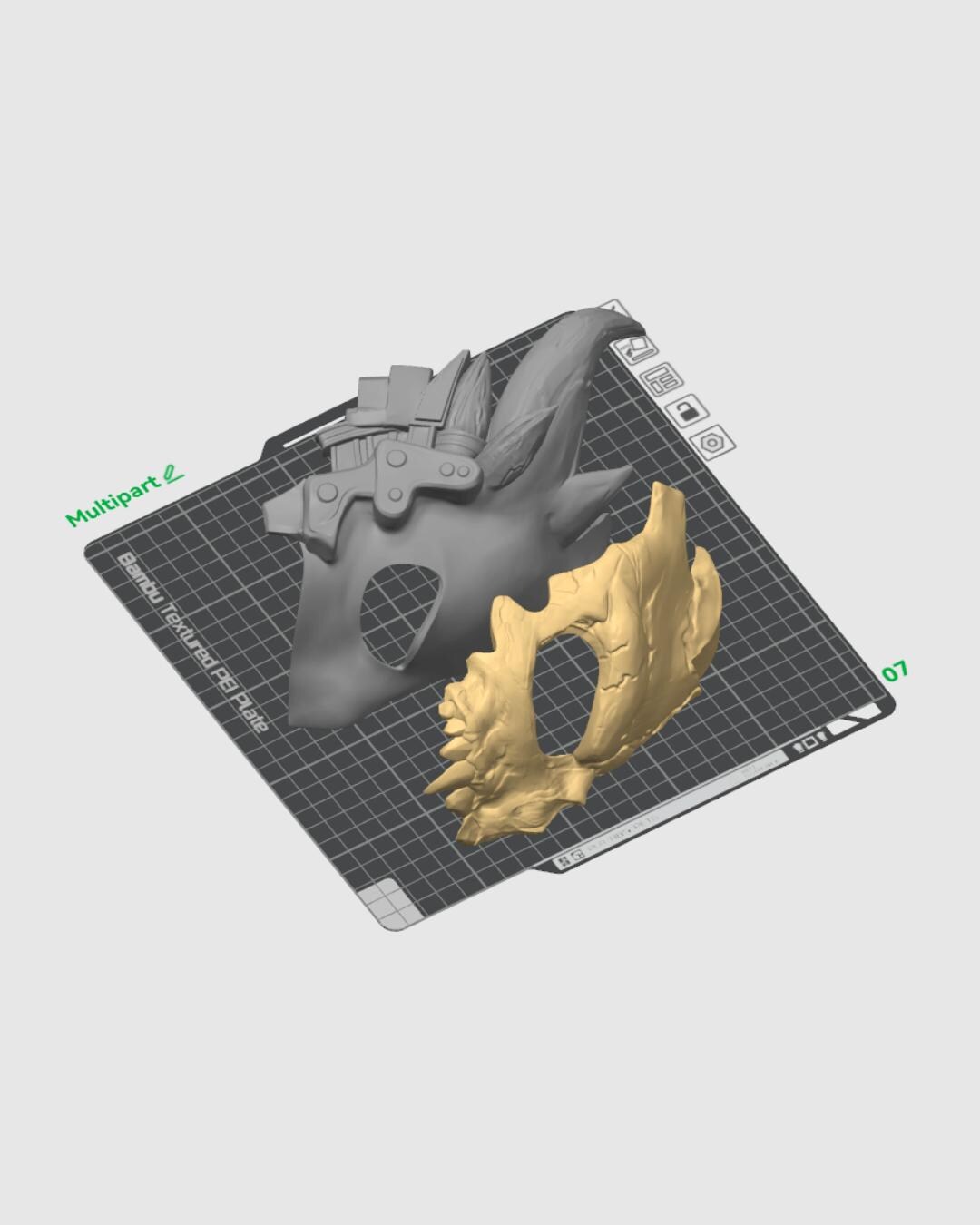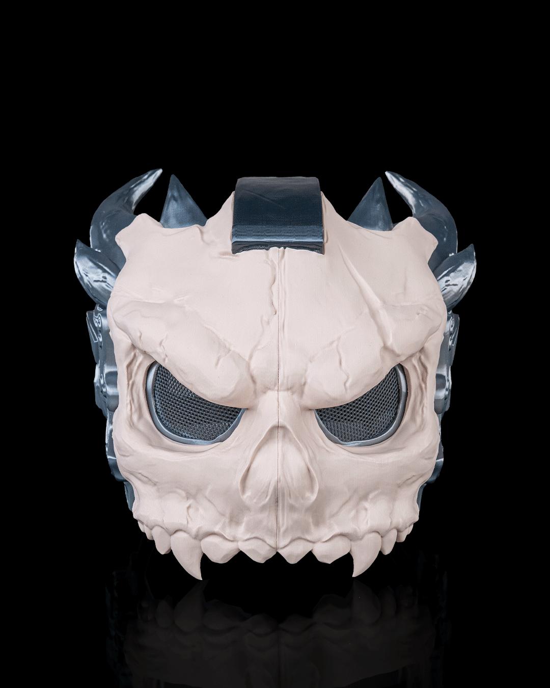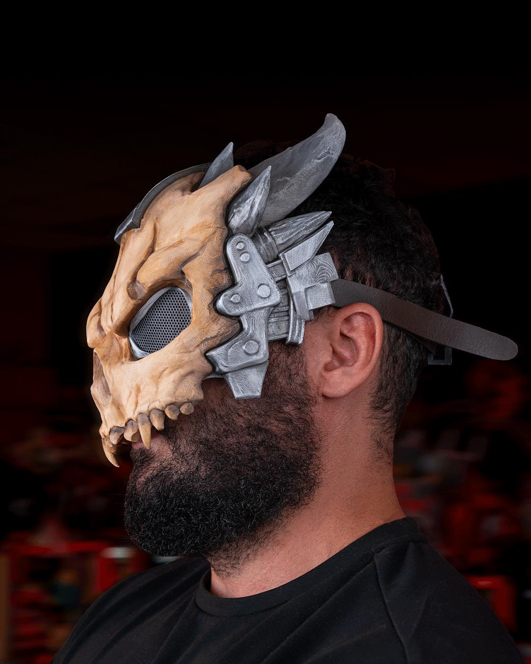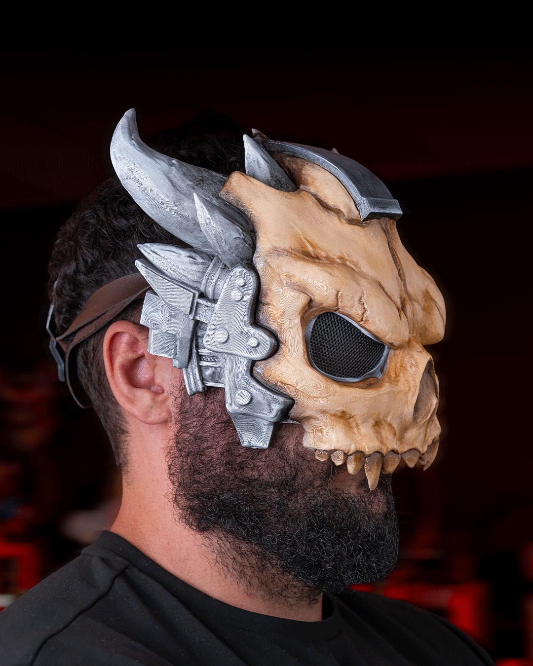 Ironhorn Inspired Half Skull Mask – 3D Printed, Ready to Paint Costume Prop