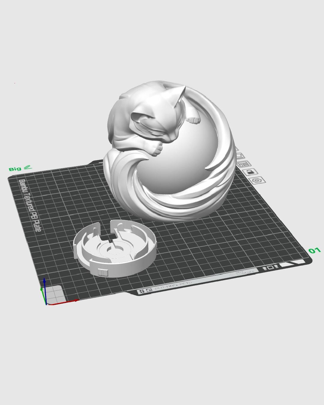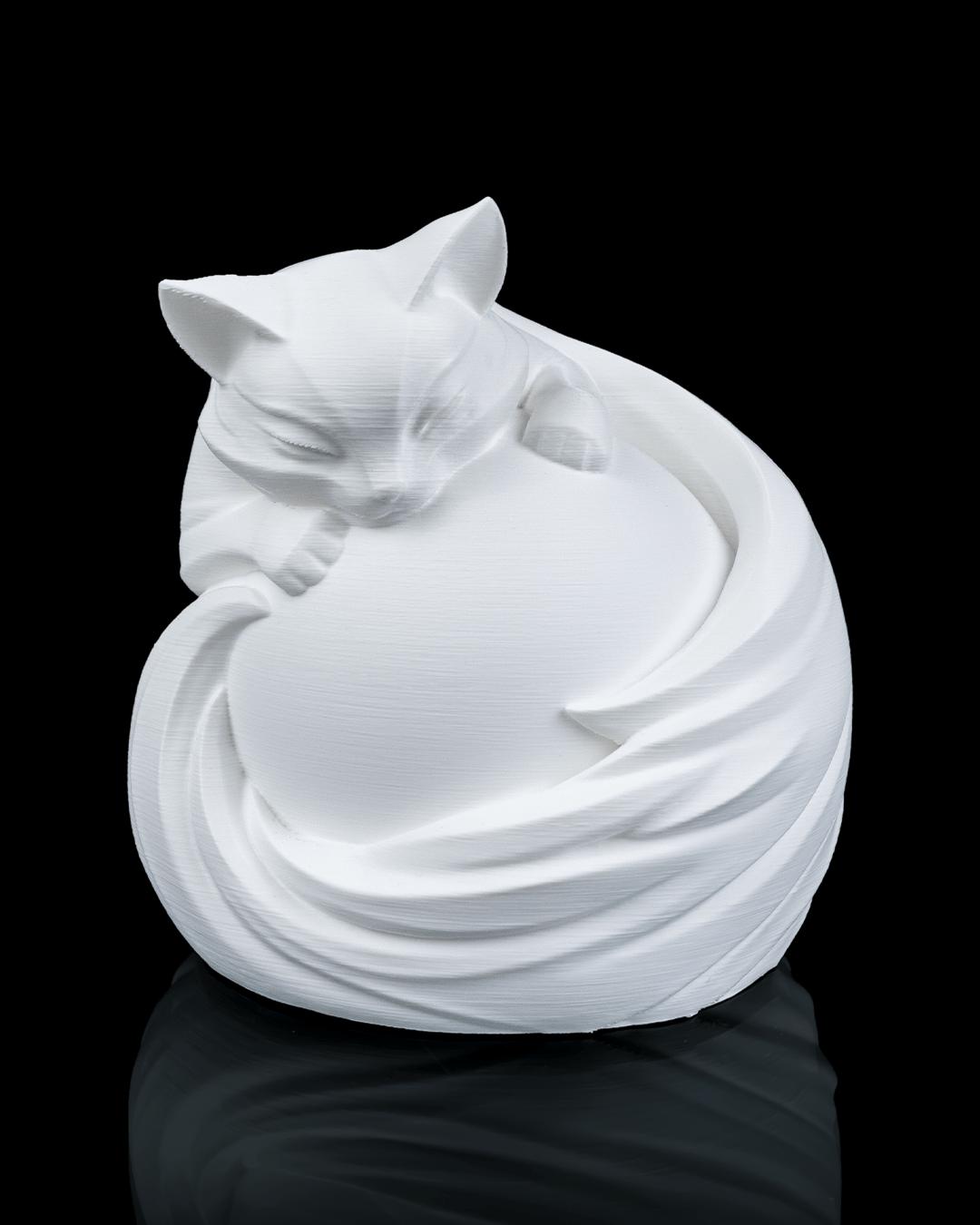 A soft glow embraced by a poised feline figure, balancing calm presence with subtle character.